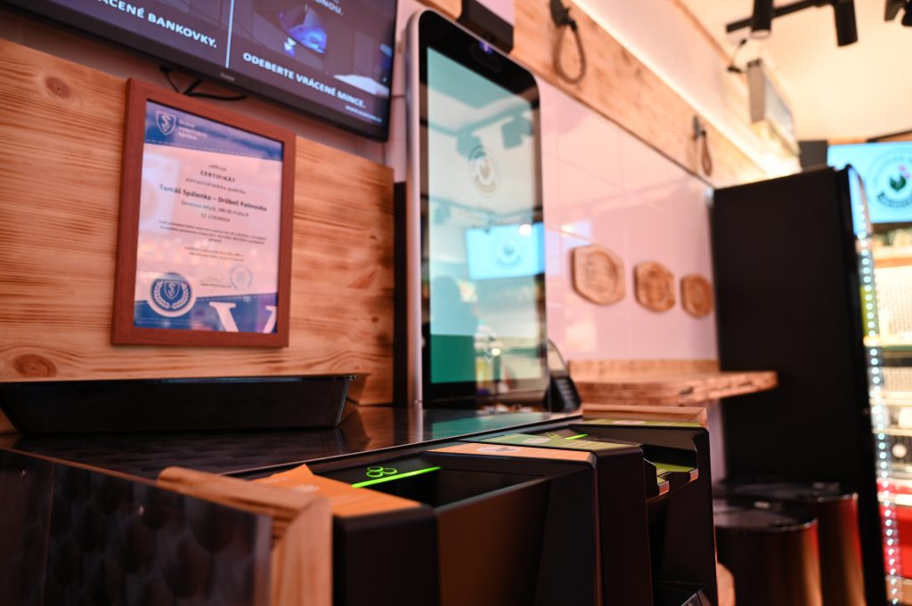 Do interiéru prodejny jsme navíc kiosek integrovali tak, aby designově ladil s moderním vzhledem obchodu a působil jako jeho přirozená součást. Součástí instalace je propojení se systémem Vkladomat, který zajišťuje přesný výběr a vrácení hotovosti zákazníkům, kteří upřednostňují tento typ platby před platbou kartami.